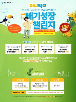 동아제약이 오는 31일까지 어린이 건강기능식품 미니막스 정글의 발매 기념 '빼기 성장 챌린지'를 실시한다.