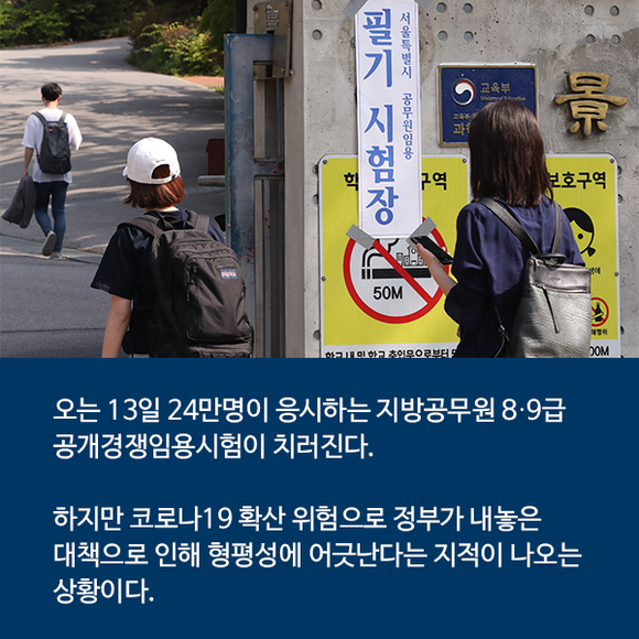 [프라임경제] 오는 13일 24만명이 응시하는 지방공무원 8·9급 공개경쟁임용시험이 있지만 코로나19 확산 위험으로 정부가 내놓은 대책으로 인해 형평성에 어긋난다는 지적이 나오는 상태다.