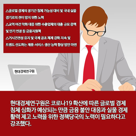 [프라임경제] 현대경제연구원은 코로나19의 확산으로 인해 세계 경제 침체 가능성이 높아져 이에 대비해야 한다고 밝혔다.