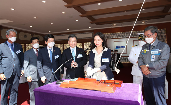 대우조선해양 거제옥포조선소에서 개최된 이날 명명식에는 김용범 기획재정부 제1차관을 비롯해 김양수 해양수산부 차관, 변광용 거제시장, 권우석 수출입은행 부행장, 조규열 해양진흥공사 정책지원본부장, 배재훈 HMM 대표이사 등 관계자 60여명이 참석했다.