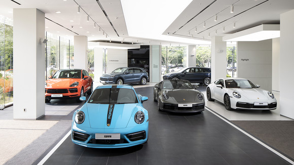 포르쉐 브랜드의 새로운 건축 디자인 콘셉트(Corporate Architecture)와 딜러 네트워크의 최신 CI를 적용한 쇼룸은 최대 14대의 차량전시가 가능하며, 최신 주요 모델을 전시하는 하이라이트 존이 마련돼 있다. 또 포르쉐 최초의 순수 전기 스포츠카 타이칸 출시를 앞두고 E-퍼포먼스 존(E-Performance Zone)을 구성해 본격적인 전동화 시대를 대비한다.