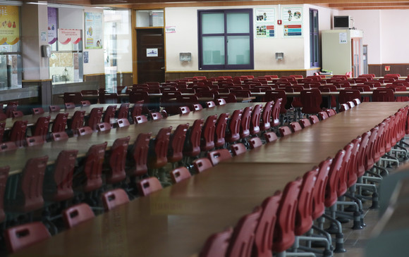 지난 2018년 학생들이 급식 케이크를 먹고 식중독 의심 증세를 보인 전북 익산시 모 중학교의 급식실이 점심시간인데도 텅 비어 있는 모습. ⓒ 연합뉴스