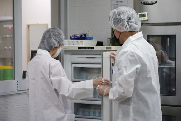 서울시 관계자들이 지난 7월7일 오전 서울 성동구의 한 유치원 급식소에서 긴급 위생 점검을 하고 있다. ⓒ 연합뉴스