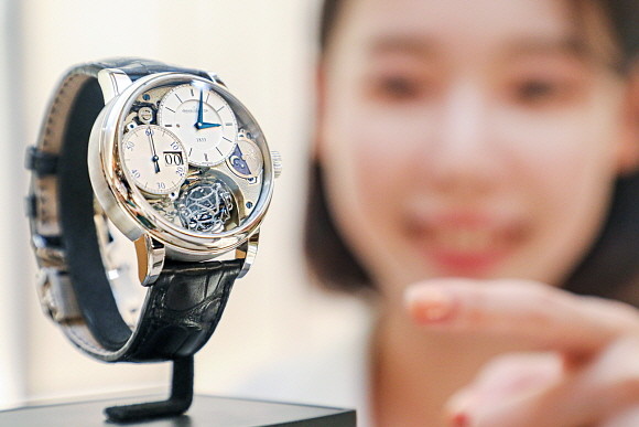 '마스터 그랑 트래디션 자이로투르비옹 3 주빌리'는 시계 안에 구(球)형 모양의 투르비옹이 마치 공중에 매달린 듯 회전하는 것이 특징으로, 국내에서 단 1점 만이 판매된다.
