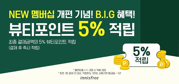 새로워진 멤버십 개편으로 최대 50% 클리어런스, '클렌징폼 1+1', 모든 회원 대상 결제 금액 5% 뷰티포인트 적립 프로모션 등 더 풍부하고 다양해진 혜택을 제공하는 '8월 멤버십데이'의 자세한 내용은 이니스프리 매장 및 홈페이지를 통해 확인할 수 있다.