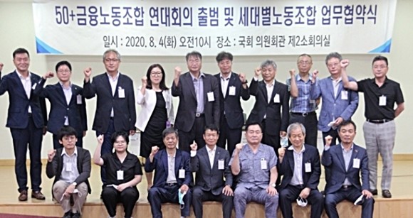'50+금융노조'는 산업은행을 포함해 △기업은행 △국민은행 △우리은행 △씨티은행 △신용보증기금 △기술보증기금 △서울보증보험 8개 금융사 내 시니어 노조가 연맹 형식으로 힘을 합쳐 지난 4일 출범했다. 조합원 수는 약 2000여명이다.