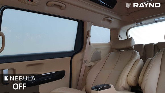 신제품 네뷸라는 2가지 형태다. 운전석과 조수석에 적용 가능한 스마트 선스크린과 2열에 시공 가능한 스마트 커튼이 있다.