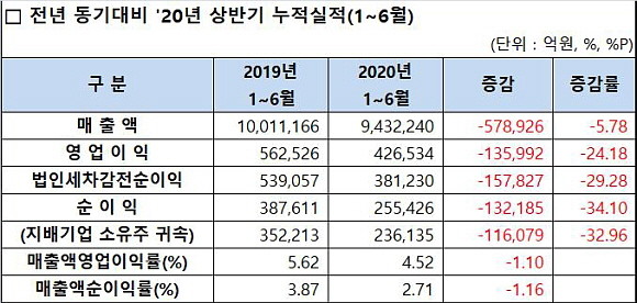 ◆2020년 상반기, 10년 만에 최악의 성적표…코로나19 영향