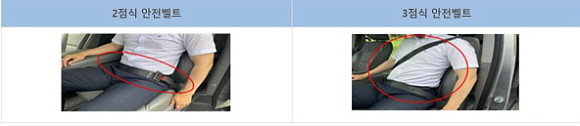2점식 안전벨트는 벨트 양 끝이 시트에 고정된 형태다. 3점식 안전벨트는 벨트가 시트 3개 지점에 고정된 형태다. 어린이 통학 버스 안전벨트는 어린이 신체 구조에 맞게 조절할 수 있어야 한다고 규정돼 있지만, 일반적인 3점식 안전벨트는 어린이 신체에 맞게 조절할 수 없어 2점식 안전벨트가 설치돼 있는 실정이다.