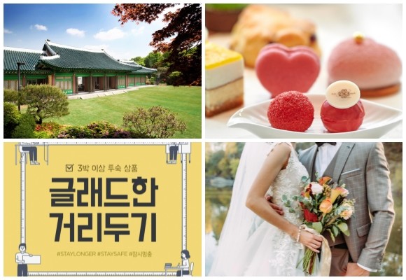 (왼쪽부터 시계방향) 서울신라호텔 한식 프로그램, 롯데호텔 2020 머스트 비 르 루즈 : 트러플 하트, 롯데호텔 신혼여행 허니문 패키지, 글래드 호텔앤리조트 글래드한 거리두기 패키지. © 각 사