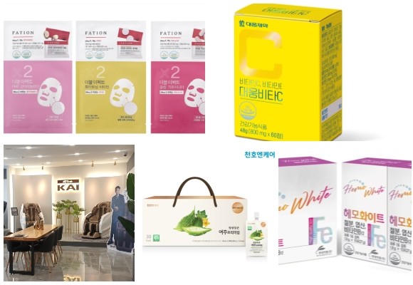 (왼쪽부터 시계방향) 파티온 더블 이펙트 4종, 대웅제약 비타민 2종 출시, 현대약품 헤모화이트 출시, 천호엔케어 여주 프리미엄, 휴테크산업 경기 고양시 덕양직영점 오픈. © 각 사
