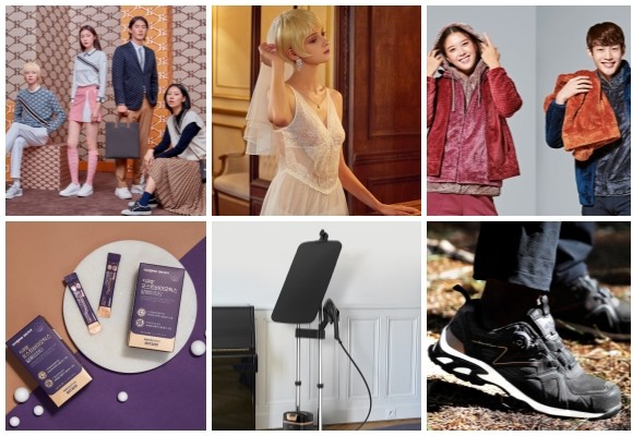 (왼쪽부터 시계방향) 헤지스 가을·겨울 컬렉션 출시, 에블린 크리스털 에디션, 레드페이스 플리스 재킷 시리즈, 테팔 엑시오, 일동제약 지큐랩 포스트바이오틱스 알에이치티. © 각 사