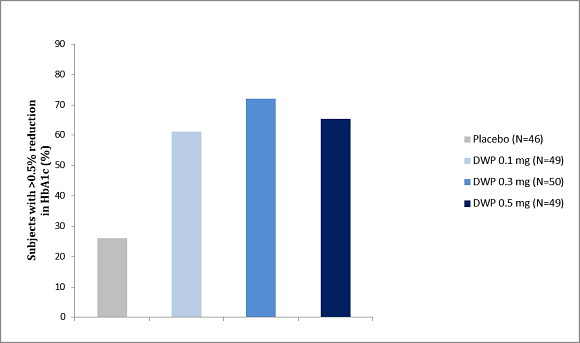 기저치 대비 12주 째 HbA1c 0.5% 초과 감소한 환자 비율. © 대웅제약