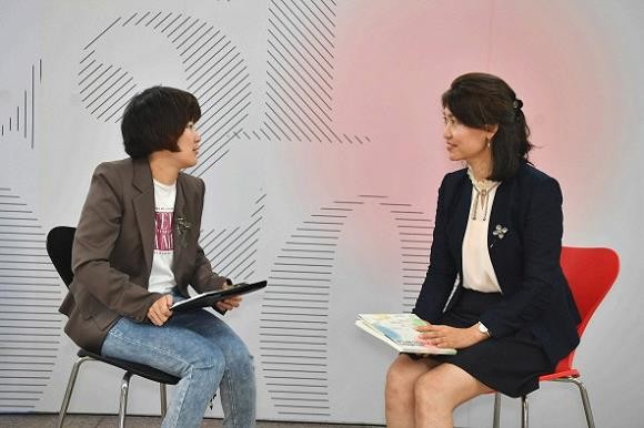강경숙 교수가 김민진 휴먼에이드포스트 기자와 인터뷰하고 있는 모습. 강 교수와 김 기자의 인터뷰 만남은 지난 2018년, 2019년에 이어 벌써 세 번째. 김 기자는 발달장애 청년들이 정규직 기자로 활동하고 있는 휴먼에이드포스트의 최고참 기자다. 강 교수는 김 기자의 발전상을 꾸준히 지켜보면서 응원하고 있다. ⓒ 휴먼에이드