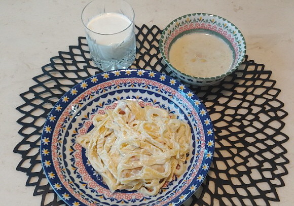 완성된 크림 파스타는 재료의 부족함에도 크림 파스타만의 고소한 풍미를 느낄 수 있었다. 특히 가장 기본이 되는 저지 우유와 달걀만으로도 쉽게 크림소스를 만들 수 있어 조리 시간 또한 단축할 수 있었다.