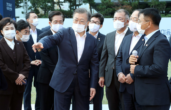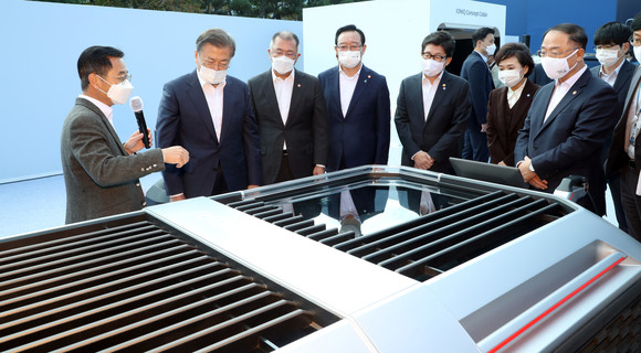 한편, 문 대통령은 본 행사 이후 정의선 현대차그룹 회장, 각부 장관 등과 함께 행사장 내외 에 전시된 미래차 글로벌 경쟁력 제품을 둘러봤다.