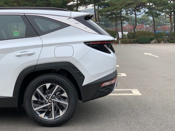 신형 투싼은 펜더의 풍부한 볼륨, 각진 휠 아치의 조화를 통해 입체적이고 감각적인 차체를 완성했다. = 노병우 기자