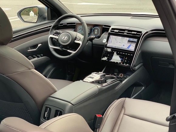 시승에 사용된 신형 투싼은 하이브리드 모델(이하 신형 투싼). 신형 투싼은 동력성능과 연비 경쟁력을 향상시킨 스마트스트림 1.6 터보 하이브리드 엔진을 처음으로 탑재했으며, 6단 자동변속기와 조화를 이뤘다.