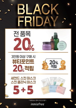 이니스프리가 1년에 단 한 번 진행하는 블랙프라이데이를 맞아 오는 30일까지 8일간 '2020 블랙프라이데이 할인 행사'를 진행한다.
