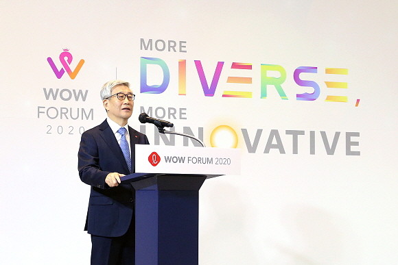 송용덕 롯데지주 부회장이 롯데 와우포럼에서 인사말을 하고 있다. © 롯데지주