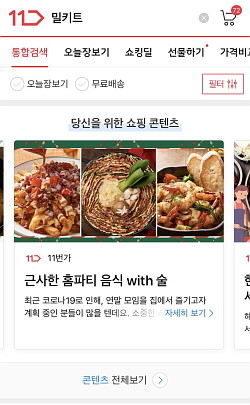외식, 외출 감소로 본격적인 연말 파티 시즌인 최근(12/1~14) 11번가 내 밀키트 품목 거래액은 전년보다 약 140%(2.4배) 급증한 추세다. 동남아식, 중식, 일식 등 다양한 메뉴까지 품목이 다채로워졌다.
