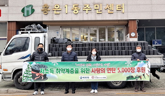 애경산업은 이번 전달식에서 코로나19로 어려움을 겪고 있는 취약계층을 위해 연탄 5000장을 지원했다. 연탄은 홍은1동에 거주하는 취약계층 주민들에게 배달될 예정이다.