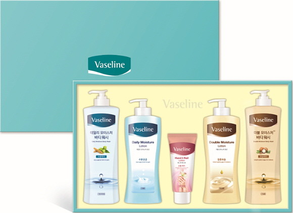 '수분가득 바세린' 선물세트는 샤워부터 건조까지 피부 보습에 도움을 주는 제품들로 구성된 선물세트이다. 보습 관리 및 수분 손실을 방지해 피부를 오랫동안 촉촉하게 유지하는데 도움을 주는 바세린 바디워시와 바디로션, 핸드 앤 네일 로션 등이 구성품으로 포함됐다. 겨울철이면 푸석해지는 피부로 고민하시는 부모님이나 피부 보습에 신경 쓰는 분들에게 선물하기 좋다.