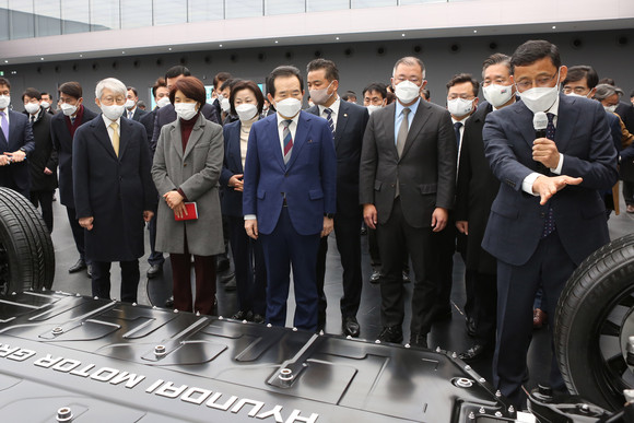 체결식에는 △정세균 국무총리 △성윤모 산업부 장관 △정의선 현대자동차그룹 회장 △공영운 현대차 사장 △김정훈 현대글로비스 사장 △김종현 LG에너지솔루션 사장 △이행렬 KST모빌리티 대표 등이 참석했다.