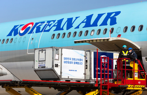 화이자 코로나19 백신이 하기되고 있는 모습. ⓒ 대한항공