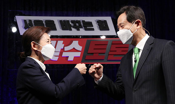 미래한국연구소가 지난달 28일 PNR리서치에 의뢰한 서울시장 보궐선거 관련 여론조사에 따르면 나경원 예비후보가 26.9%를, 오세훈 예비후보가 26.2%를 얻었다. ⓒ 연합뉴스
