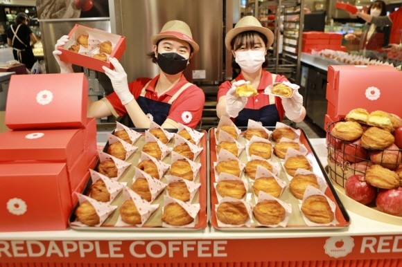 롯데백화점이 국내 최초 프리미엄 애플파이 전문 스토어 '레드애플(REDAPPLE)'의 화이트데이 기념 팝업스토어를 본점 지하1층에서 21일까지 운영한다.