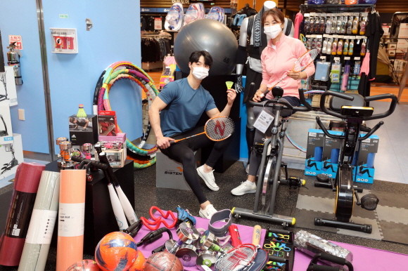 '이고진 좌식실내자전거' '이고진 워킹패드 J3' 등의 실내 헬스 기구는 행사 카드 구매 시 10% 할인 판매하며, 따뜻한 봄 날씨를 맞아 실외 스포츠용품 수요도 늘어날 것을 예상해 배트민턴 라켓/용품 전 품목을 행사카드 구매 시 20% 할인 판매한다.