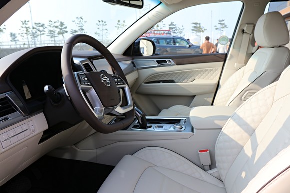 정통 SUV 멋을 살린 4스포크 타입의 스티어링 휠은 더블 다이아몬드 스티치와 D컷으로 스포티 엣지를 부여하며, 오버헤드 콘솔에 하이글로시 소재 디자인과 터치식 스위치로 편의성을 더했다. 계기반은 화려한 그래픽으로 다양한 정보를 표시하는 12.3인치 풀 디지털 클러스터로 변화했다.