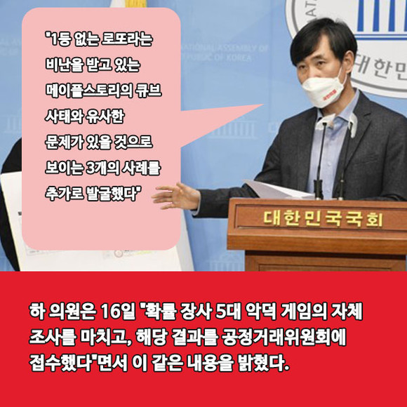 [프라임경제] 하태경 국민의힘 의원은 16일 메이플스토리 확률 조작 의혹으로 자체 조사한 결과를 공정거래위원회에 제출했다고 밝혔다.