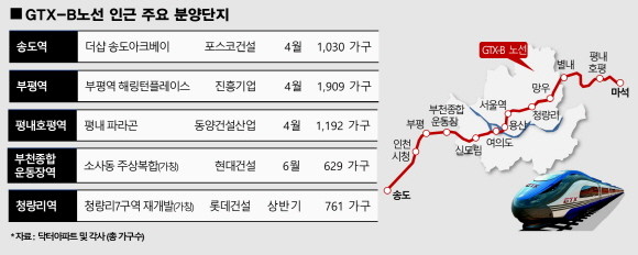실제 건설사들도 GTX-B노선 주변으로 신축 아파 분양에 돌입하고 있는 상황이다. 더군다나 송도·부평·청량리 등 주요 지역에 공급될 예정인 만큼 수요자들 관심이 집중될 전망이다.