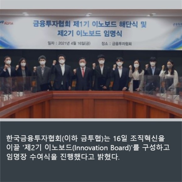 [프라임경제] 한국금융투자협회(이하 금투협)는 16일 조직혁신을 이끌 '제2기 이노보드(Innovation Board)'를 구성하고 임명장 수여식을 진행했다고 밝혔다.