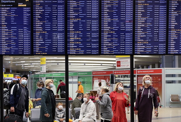 코로나19 백신 물량을 충분히 확보한 일부 국가들이 '코로나 백신 관광'을 추진한다. 사진은 지난해 러시아 셰레메티예보 국제공항에서 마스크를 쓴 이용객들. © 연합뉴스