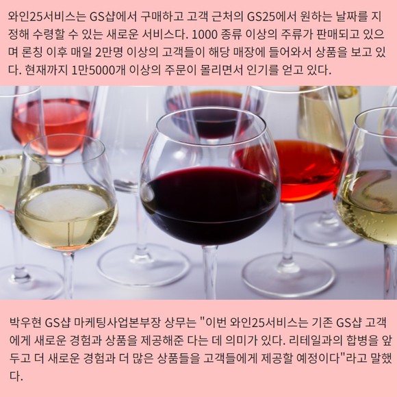 [프라임경제] GS샵에 입점한 GS리테일의 와인25서비스가 고객들에게 새로운 경험을 제공하고 있다.