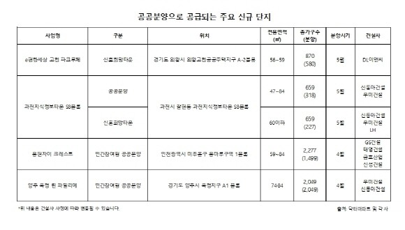 LH청약센터 자료에 따르면, 사전청약 주택을 제외한 올해 전국에서 △분양주택 20곳 8999가구 △신혼희망타운 10곳 3345가구 총 1만2344가구(30곳)에 달하는 공공분양주택이 공급된다. 지역별로는 △경기 7529가구 △인천 2266가구 △부산 835가구 △광주 750가구 △경남 722가구 △서울 242가구 등이다.
