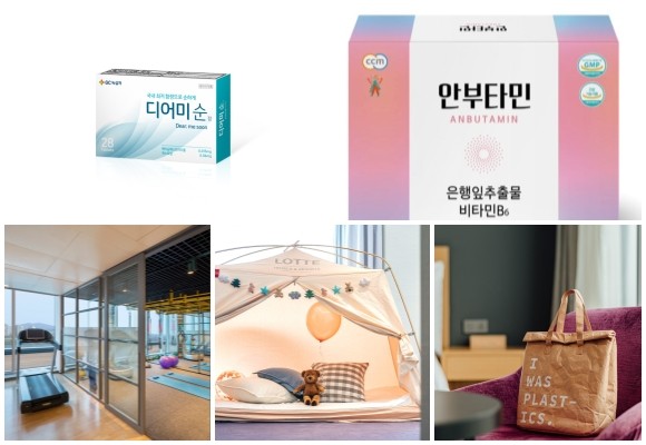 (왼쪽부터 시계방향) GC녹십자 디어미순, 현대약품 안부타민정, 롯데호텔 세이브 디 어스 패키지, 롯데호텔 서울 가정의 달 5월 패키지 3종, 비스타 워커힐 웰니스 GX 패키지. © 각 사
