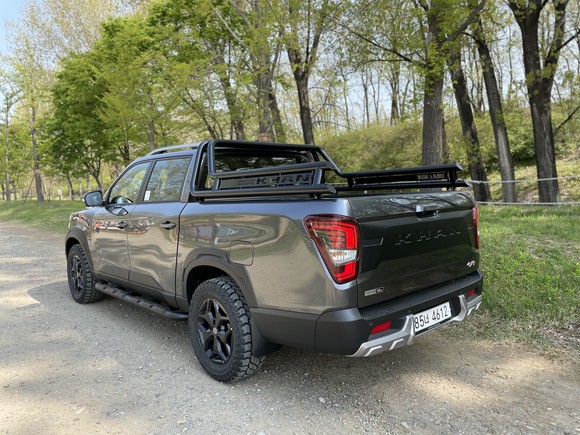 휠&도어 가니쉬, KHAN 레터링이 새겨진 테일게이트 가니쉬가 조화를 이루고 있는 모습. = 노병우 기자