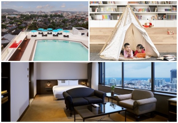 (왼쪽부터 시계방향) 라한호텔 전주 루프탑 야외 수영장 개장, 해비치 두린아이 패키지, 글래드 호텔앤리조트 얼리 서머 패키지. © 각 사