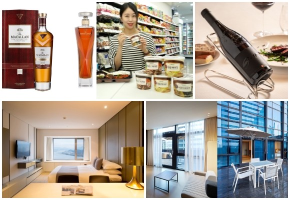 (왼쪽부터 시계방향) 세븐일레븐 맥캘란 1824 마스터즈·세븐셀렉트 컵국 시리즈, 롯데호텔 피에르 가니에르 셰프 와인 가리, 신라스테이 언택트 키즈 스파 패키지, 워커힐 워캉스 패키지. © 각 사