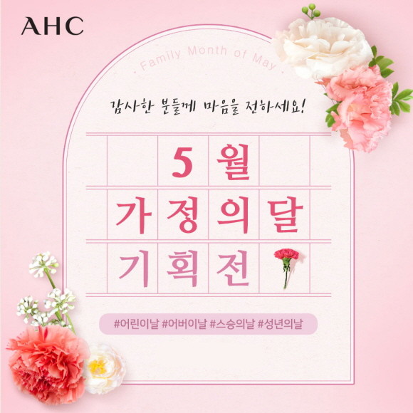 AHC가 가정의 달을 맞아 감사한 이들에게 특별하게 마음을 전할 수 있도록 오는 16일까지 AHC몰을 비롯한 온라인에서 '5월 가정의 달 기획전'을 실시한다.