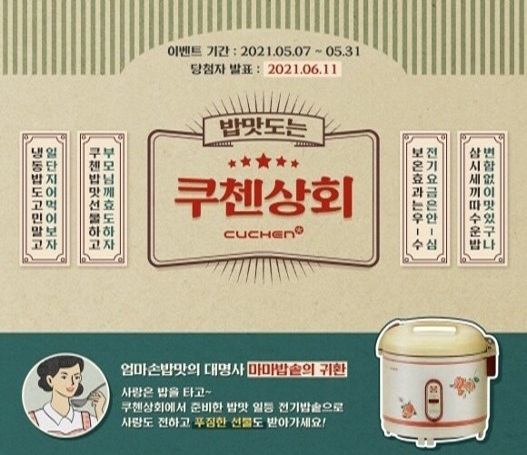 쿠첸이 5월 가정의 달을 맞이해 '밥맛도는 쿠첸상회' 프로모션을 진행한다. © 쿠첸