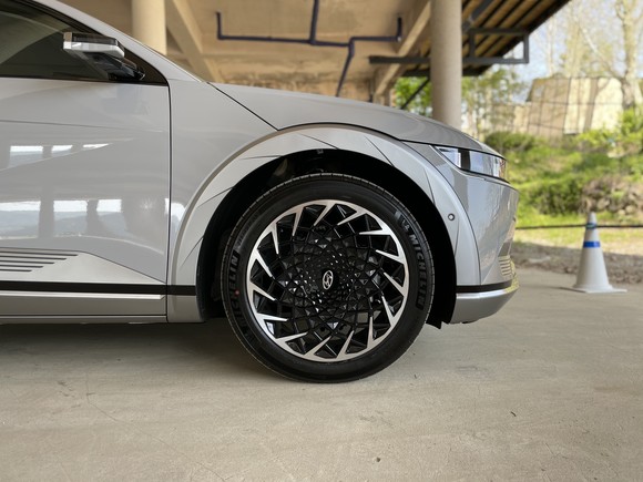 현대차 전기차 역대 최대 직경이자 공기 역학 구조를 적용한 20인치 휠. = 노병우 기자