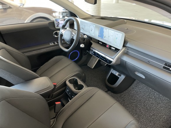 실내는 '편안한 거주 공간(Living Space)'이라는 테마가 반영된 만큼, 생활과 이동의 경계가 많이 허물어진 모습이다. 특히 전기차 전용 플랫폼 'E-GMP' 적용으로 기존 내연기관차에서는 볼 수 없었던 공간이었다.
