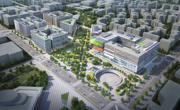 대지면적(8만2724㎡)은 상암동 월드컵경기장 9배 수준이며, 연면적(약 82만㎡)의 경우 삼성동 코엑스(46만㎡) 약 2배 규모다. 단지는 4개 블록(CP1·CP2·CP3-1·CP3-2)으로 구성된다.