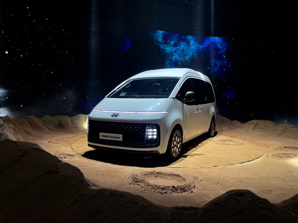 우주선을 연상시키는 유려한 곡선의 스타리아 외관. ⓒ 현대자동차