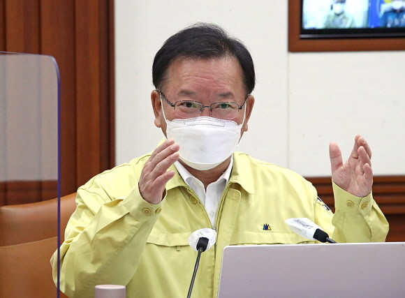 30일 정부서울청사에서 주재한 중앙재난안전대책본부 회의에 참석한 김부겸 국무총리. © 연합뉴스